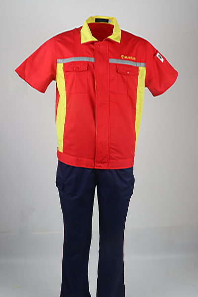 秋季和夏季工作服的主要區(qū)別在面料和上衣袖子區(qū)別上,夏季工作服采用的是上衣短袖下身長袖套裝,這次的設(shè)計(jì)考慮到工作環(huán)境因素所有有反光條設(shè)計(jì)和防靜電設(shè)計(jì),天曼小編要再次提醒大家,防靜電設(shè)計(jì)一定要認(rèn)準(zhǔn)LA標(biāo)志哦,在顏色的選擇上上衣為紅黃色搭配,下身是深藍(lán)色,整個(gè)套裝看起來熱情奔放,我已經(jīng)能腦補(bǔ)到路航石油員工穿著認(rèn)真工作的樣子了。