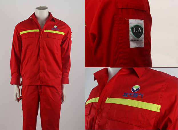 目前工作服大部分已經到了收尾環節,而這件夏季長袖工作服也非常有特色了,首先采用的是先進的防靜電材料,因考慮到工作性質,這樣極大保證了企業的安全生產,同時也提高了員工的安全保障,面料是TC65/35,對于夏季長袖工作服的話最重要就是要透氣吸汗舒適,不管是在安全還是在質量上,天曼這四十多年來一直在努力,版型采用傳統工裝,在設計主題顏色采用中國紅,大氣美觀,胸前印制企業logo,極大提高了企業辨識度,同時小編想提醒大家,一定要認準肩膀前的防靜電“LA”標識哦,。國家對于特種勞動防護用品實行安全標志管理制度,每一個擁有勞安標志的企業都有自己的編號可查,并且對于申請特種勞動防護用品安全標志的廠家審核也是非常嚴格的,生產的產品要必須符合安全標準,并且具備正規的廠房、生產設備、專業的從業人員、安全的生產環境等等一系列的條件才能通過審核獲得特種勞動防護用品安全標志,這也從側面證明了擁有LA資質的廠家都是正規的有實力的并且產品嚴格按照標準生產的廠家。