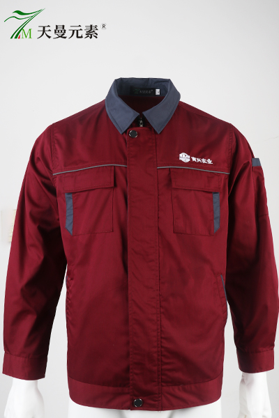 目前,工作服已經(jīng)進入尾部工作,開始在打包了,我們拿一件樣衣給大家展示下,這次采用棗紅色為主色調,領口為深灰色,顯得沉穩(wěn)大氣,款式還是傳統(tǒng)的工裝款式,胸口是白色刺繡logo,相信員工穿上這款工作服會更加努力投入工作~