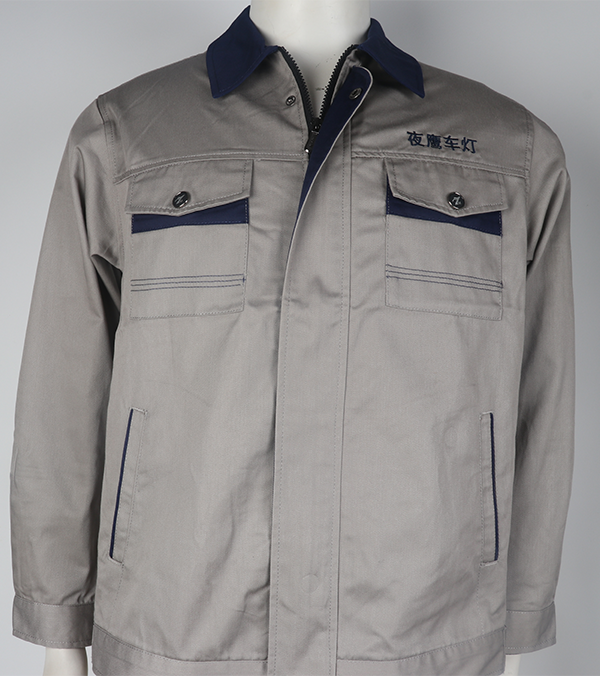 根據之前給夜鷹工作服的制作設計經驗,設計出一款具有企業元素的春秋工作服,款式選擇了傳統的工裝,天曼在面料的選擇上也是非常嚴格的,這次選用滌棉紗卡面料,,這種面料勻整光潔,質樸柔和,吸濕耐磨,尤其經過熨燙后,柔軟舒適,沒有折痕,是工裝面料的不二之選, 在顏色上主色調是銀灰色,簡潔大方,在領口和衣兜采用深藍色和銀灰色相搭配,增添許多時尚感。