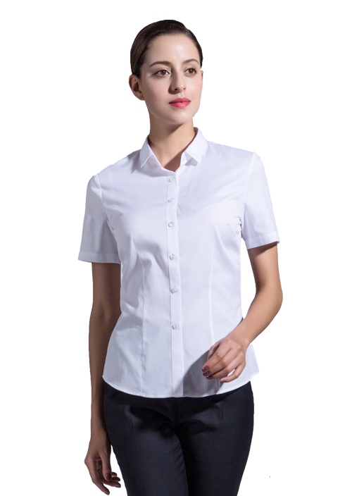 品名:女短袖關門領襯衣;版型:時尚修身版 ;貨號:WG6032 ;面料:G6002;顏色:白色暗豎紋 ;Fabric:C60/T20/TS2080s/2*80s/2
